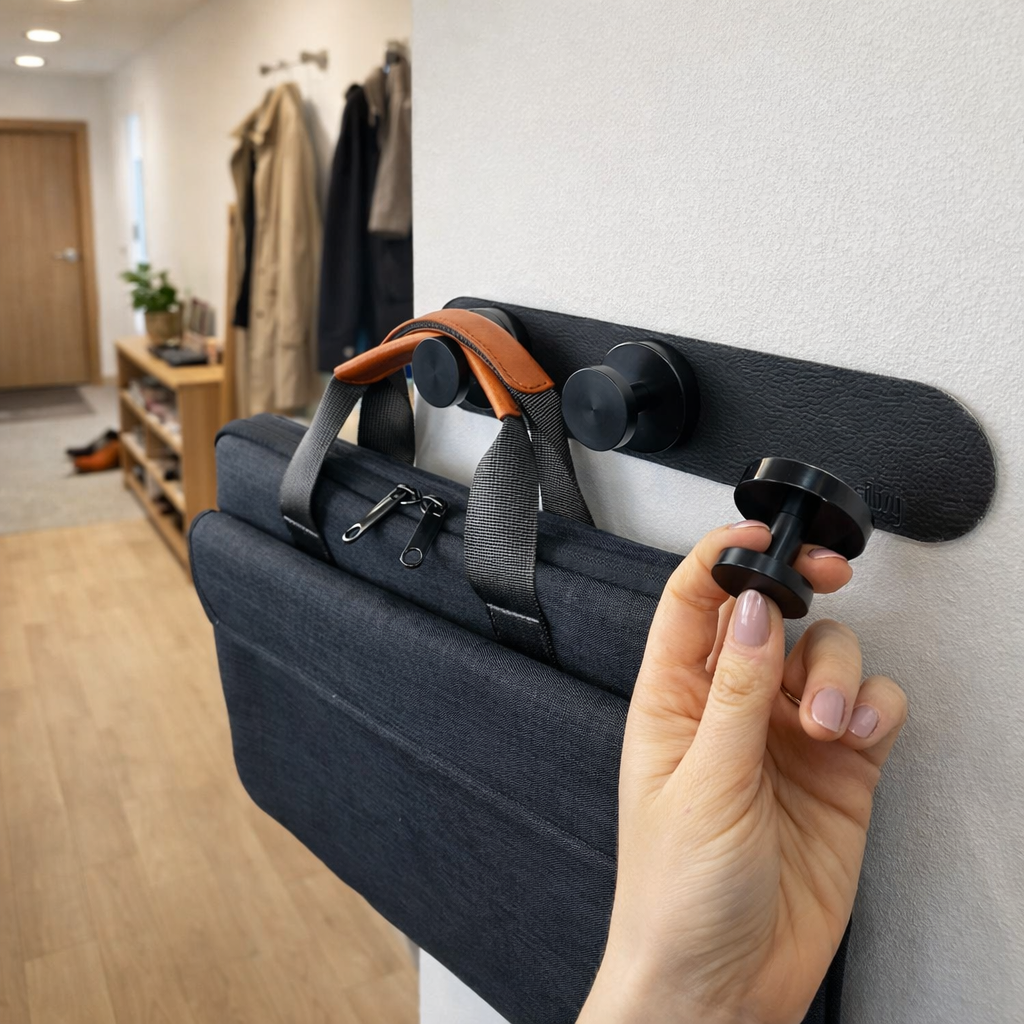 Our cloakrooms can be mounted without drilling and immediately bring order to your entrance area. In combination with the extra strong magnetic hooks, they reliably and securely hold jackets, bags, or accessories.