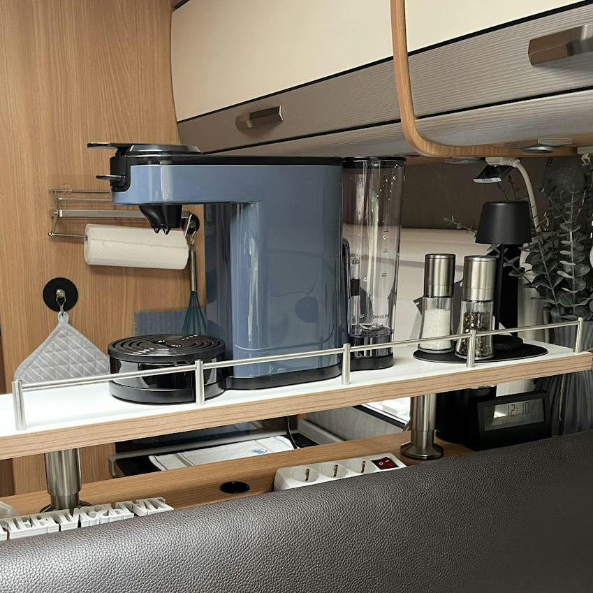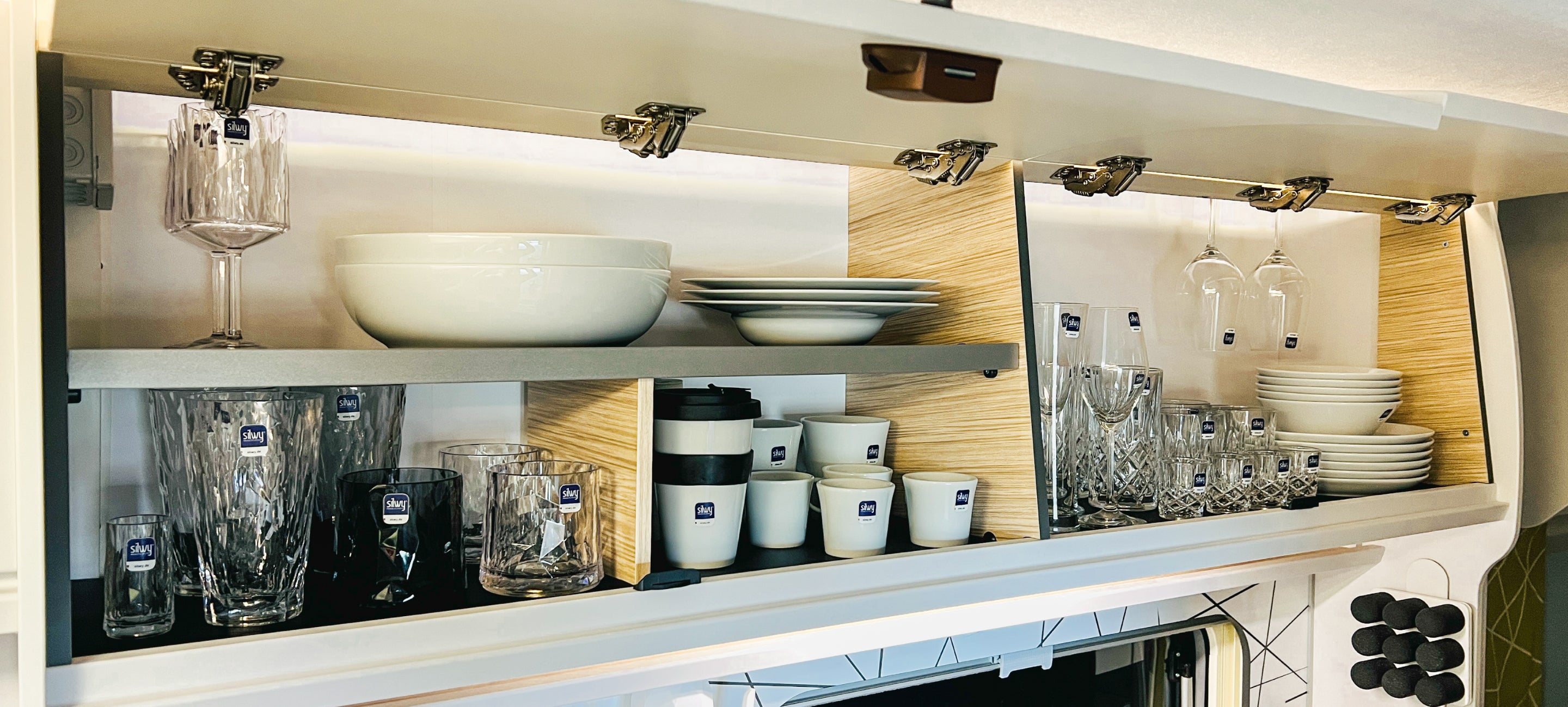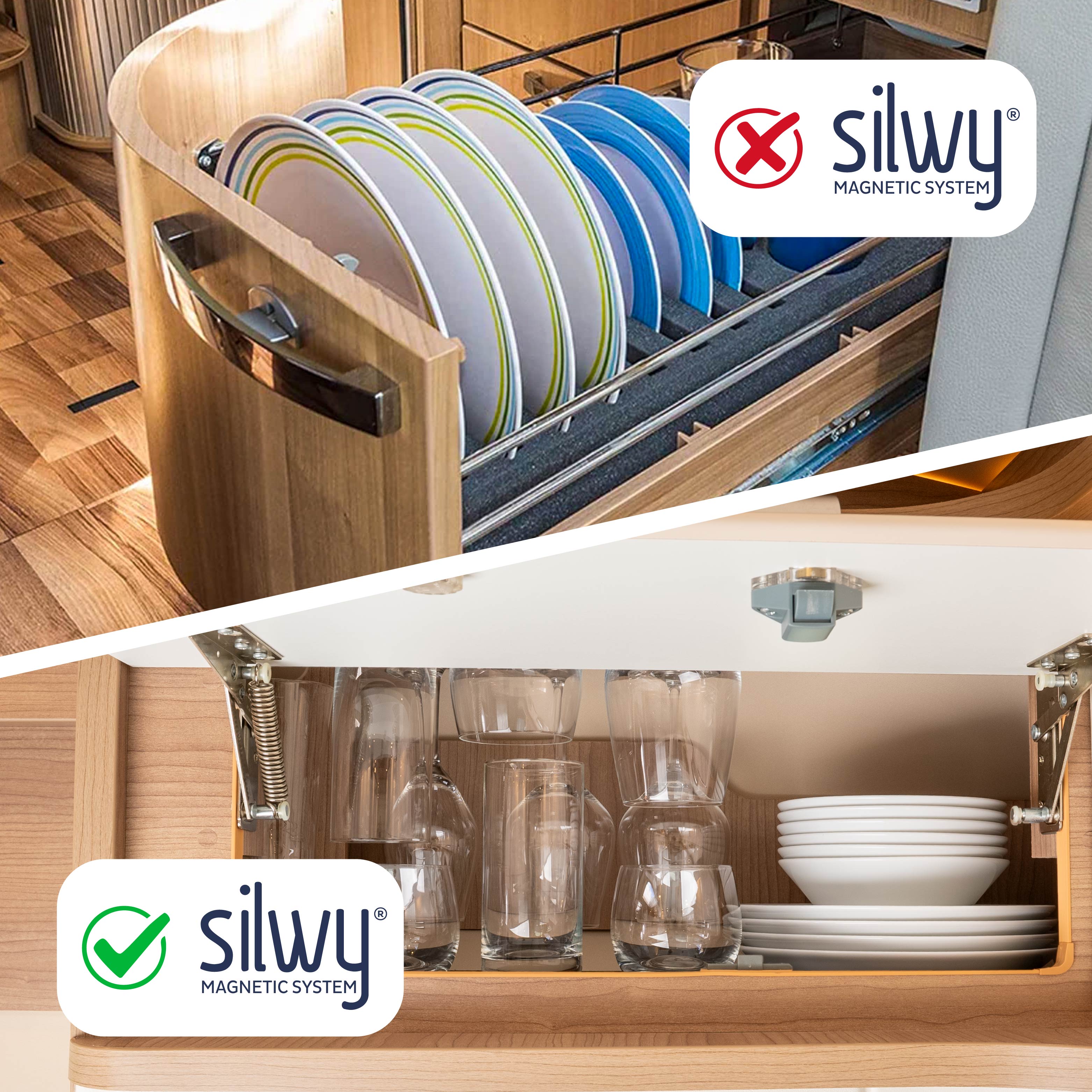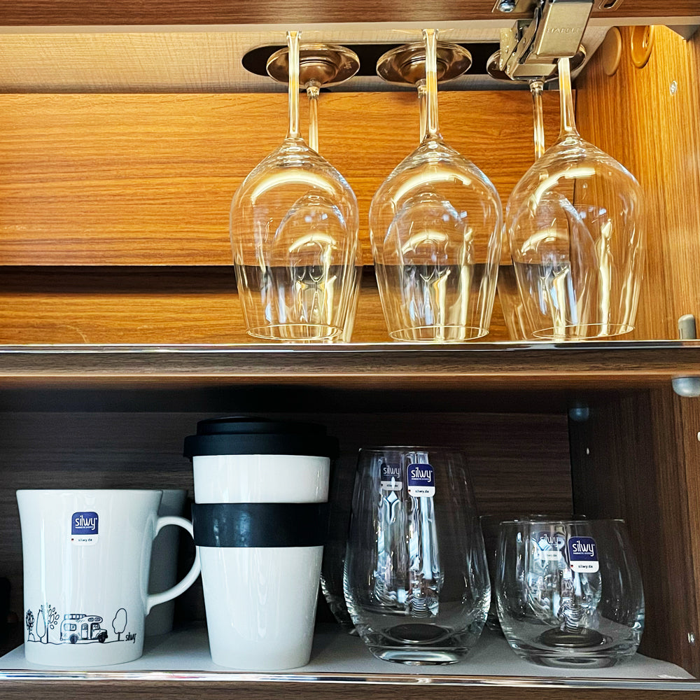 With silwy® you turn your mobile home – whether motorhome, van, or boat – into a place to feel comfortable. Glasses, cups, and plates stay safely in their place – even while driving.