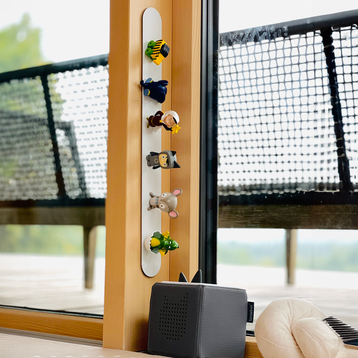 Avec la barre métallique silwy®, les Tonies trouvent leur place fixe au mur.