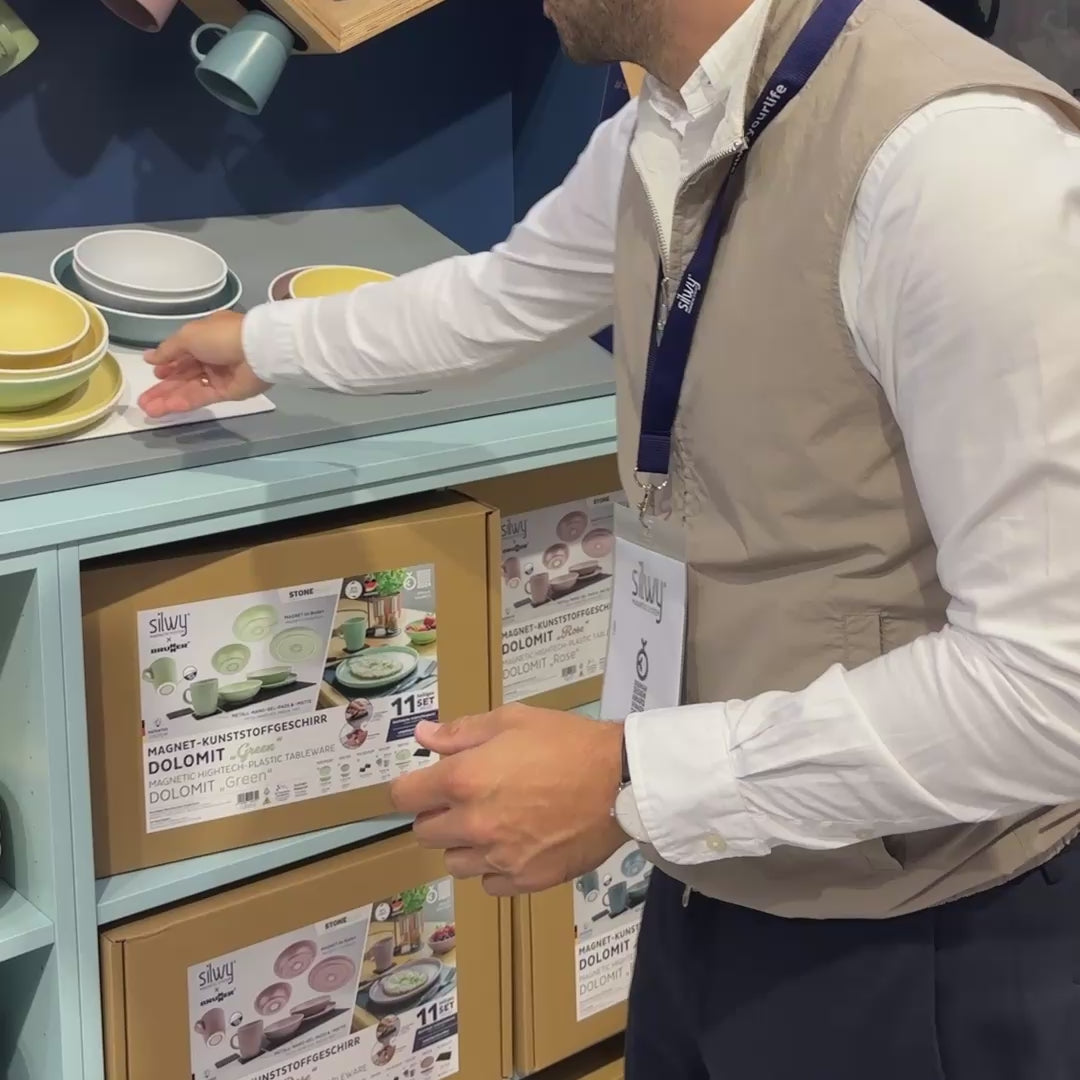 Gemeinsam mit Brunner® gibt es ab sofort eine exklusive Neuinterpretation des beliebten Brunner® STONEtouch Kunststoffgeschirrs - ausgestattet mit der smarten silwy® Magnettechnologie.